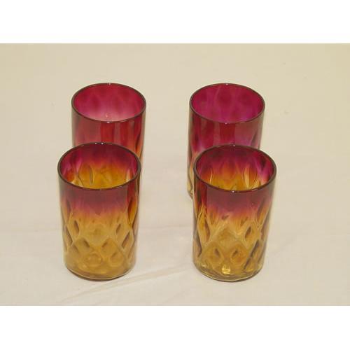 SET (4) NEW ENGLAND GLASS AMBERINA TUMBLERS - QUILTED DESIGN & RICH COLOR-UNMARKED W/ POLISHED BOTTOMS (EA. 3 3/4" T) - MINOR WEAR