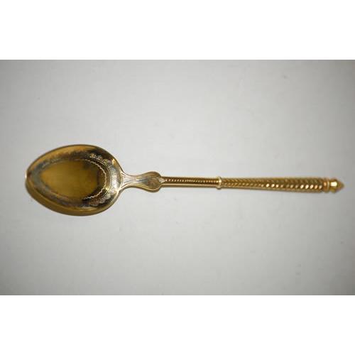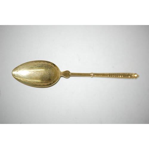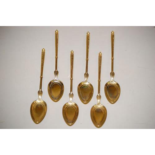 SET (6) FRENCH SILVER TEASPOONS - GILT SILVER<BR>TEASPOONS W/ RUSSIAN BRIGHT CUT DESIGN W/ FRENCH<BR>HALLMARKS IN BOWLS & MACHINE TURNED STEMS W/ POINTED<BR>TIPS (4 TROY OZ.) - MINOR WEAR & IMPERFECTIONS