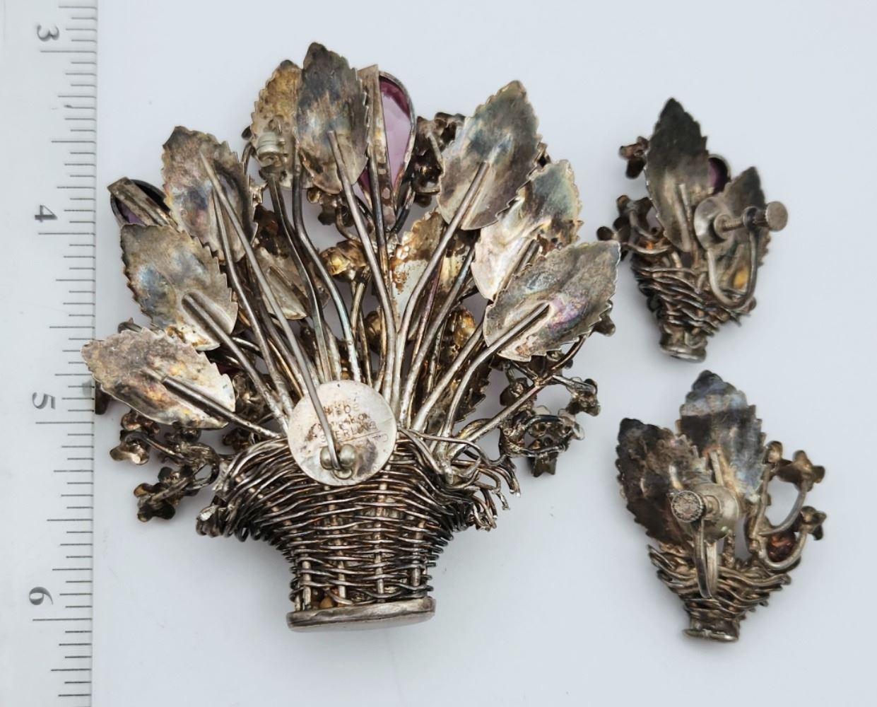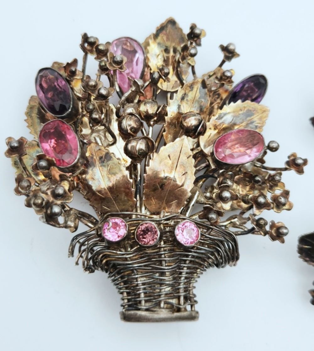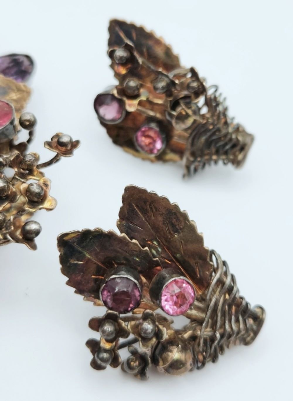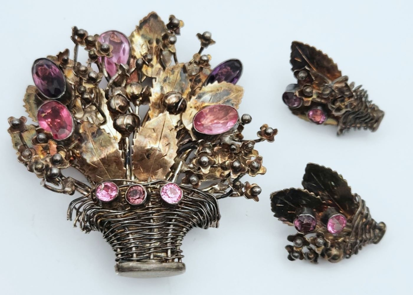 BROOCH WITH AMETHYST & PINK TOPAZ STONES WITH MATCHING TWIST BACK EARRINGS-TOTAL 55 DWT