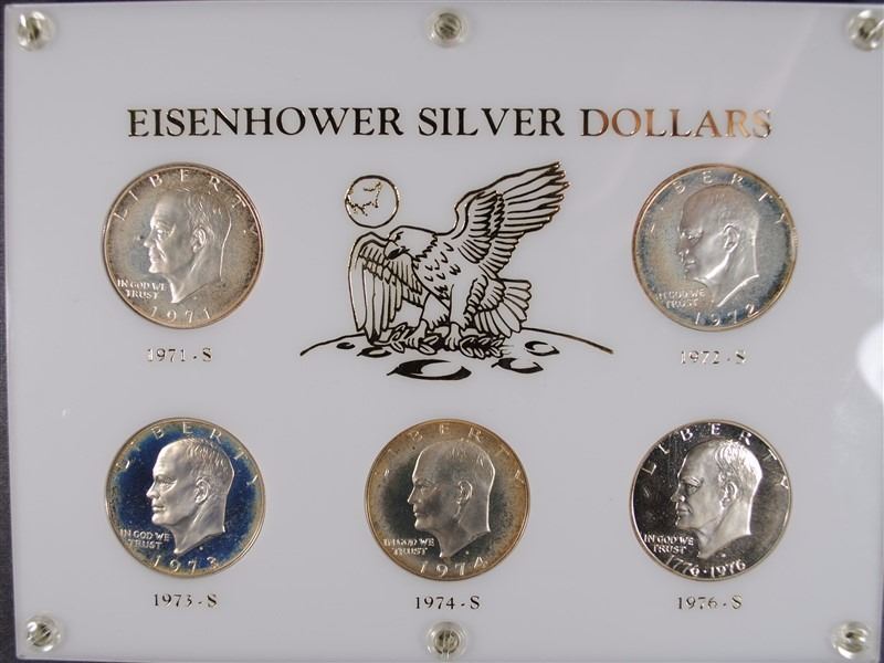 SET IN CAPITAL PLASTIC PROOF IKE DOLLAR SILVER 1 EACH (1971-S,1972-S, 1973-S,