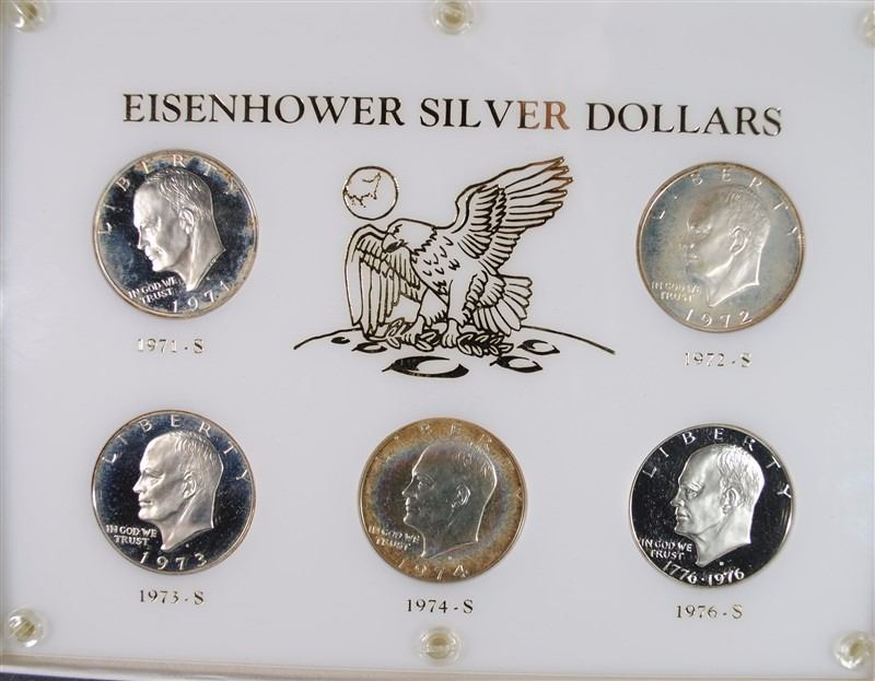 SET IN CAPITAL PLASTIC PROOF IKE DOLLAR SILVER, 1 EACH (1971-S,1972-S,1973-S,