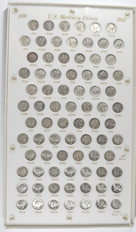 SET MERCURY DIME COMPLETE IN CAPITAL PLASTIC: 1916-AG/G, 1942/1 VF-XF, 1921 G,