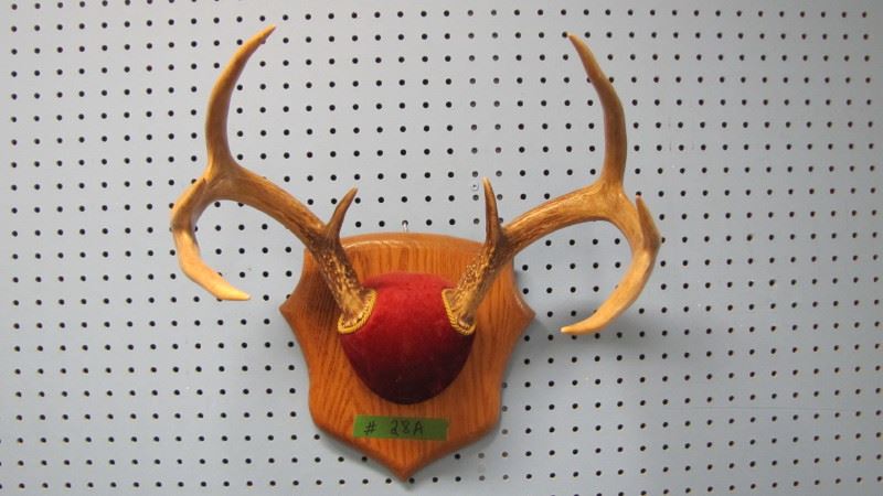 SET MOUNTED DEER HORNS SCORED 99 4/8