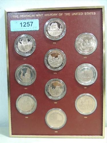 SET OF 10 BRONZE MEDALLIONS HISTORY UNITED STATES. 1976 TO 1985. FRANKLIN MINT. AS SHOWN. VIEW PICTURE FOR DETAIL.
