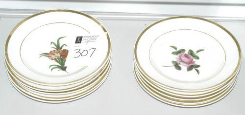 SET OF 10 OLD PARIS DESSERT PLATES with hand painted flowers, rubs to gilt borders, 19th century, PACKING AND SHIPPING (excluding insurance) $40,