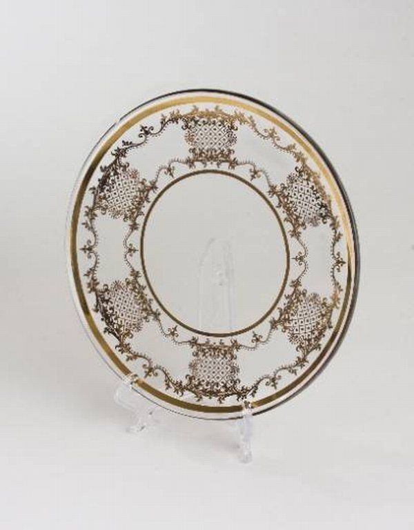 ITALIAN LEAD CRYSTAL DINNER PLATES - VENETIAN HAND PAINTED 14 KT GOLD ARTWORK - SET OF 12 PLATES - 8"