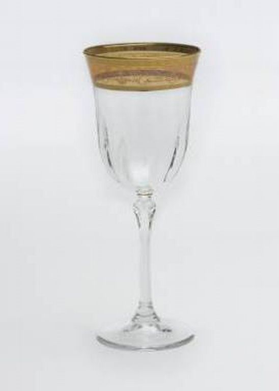 ITALIAN LEAD CRYSTAL WATER GOBLETS - VENETIAN HAND PAINTED 14 KT. GOLD & AMBER ARTWORK - MEASURES: 8.2" H - CAPACITY: 8 OUNCES - SET OF 12