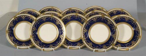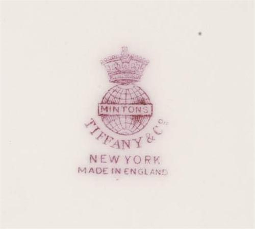 SET OF 12 MINTON SERVICE PLATES retailed by Tiffany 10 1/2" diameter, CONDITION: excellent, no damage or repairs. PACKING AND SHIPPING BY FAIRFIELD AUCTION WITHIN CONTINENTAL USA (excluding insurance) $40,