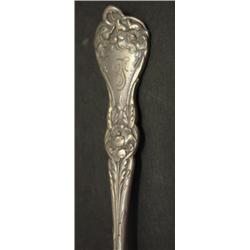 SET OF 12 STERLING SILVER TEA SPOONS. Marked on reverse of handle "Sterling" with "A" and hallmarks. Monogrammed 'F' on front of handles. 6" L