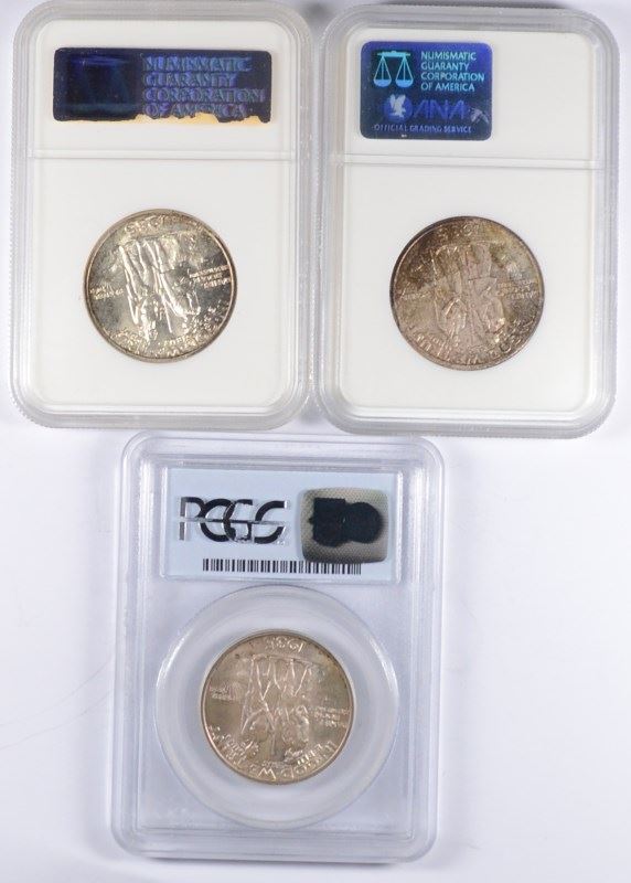SET OF 1935 P,D,S BOONE COMMEN HALF DOLLARS PCGS/NGC MS-65