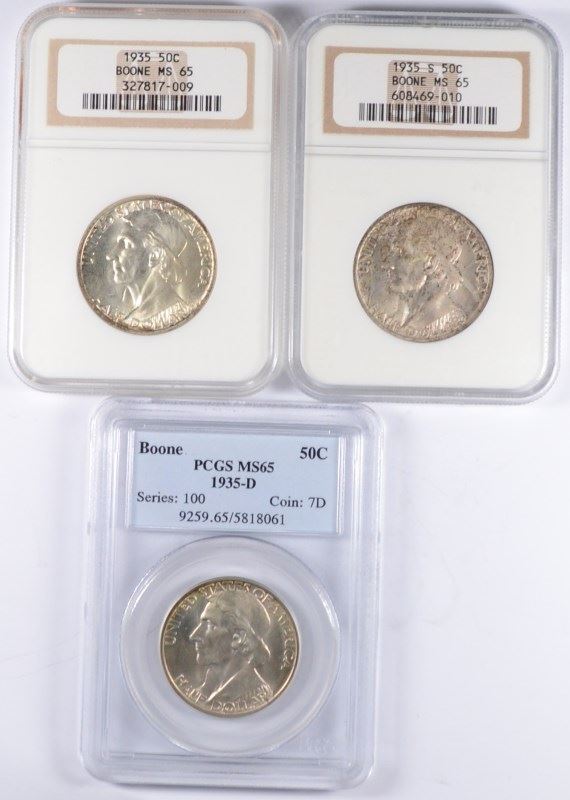 SET OF 1935 P,D,S BOONE COMMEN HALF DOLLARS PCGS/NGC MS-65