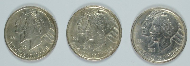 SET OF 1936 (P, D, S) ARKANSAS COMMEN HALF DOLLARS AU
