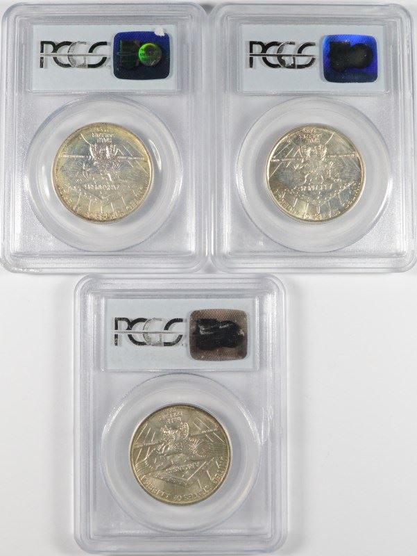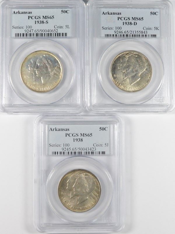 SET OF 1938 P,D,S ARKANSAS COMMEN HALF DOLLAR'S PCGS MS-65'S