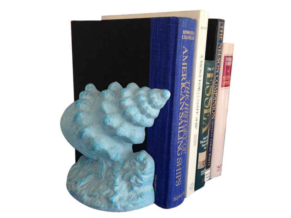 SET OF 2 9" LIGHT BLUE WHITE WASHED CAST IRON CONCH SHE **|**|** SET OF 2 9" LIGHT BLUE WHITE WASHED CAST IRON CONCH SHELL BOOK ENDS