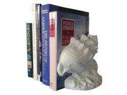 SET OF 2 9" WHITEWASHED CAST IRON CONCH SHELL BOOK ENDS **|**|** SET OF 2 9" WHITEWASHED CAST IRON CONCH SHELL BOOK ENDS
