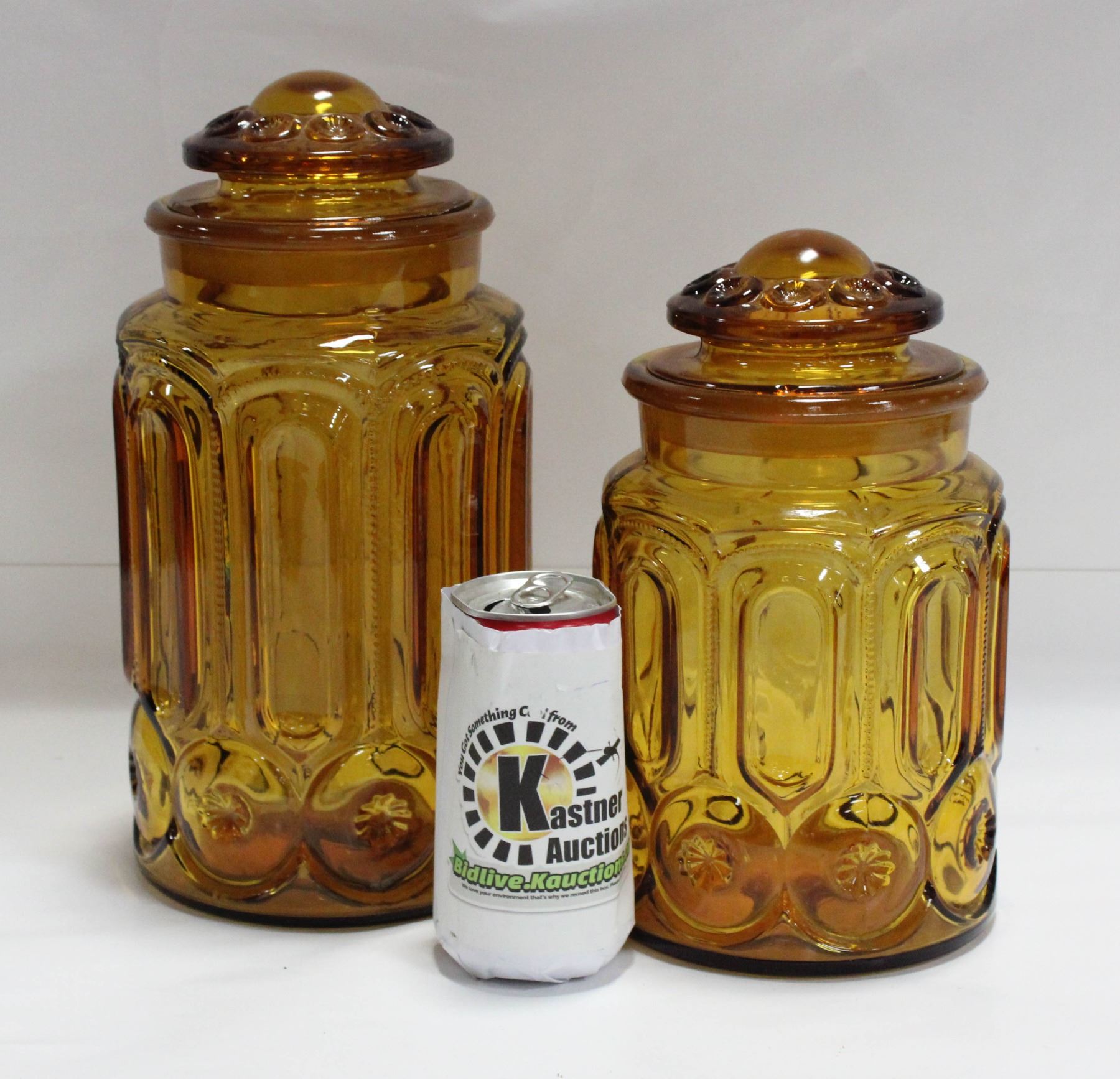 SET OF 2 AMBER GLASS STORAGE CONTAINERS