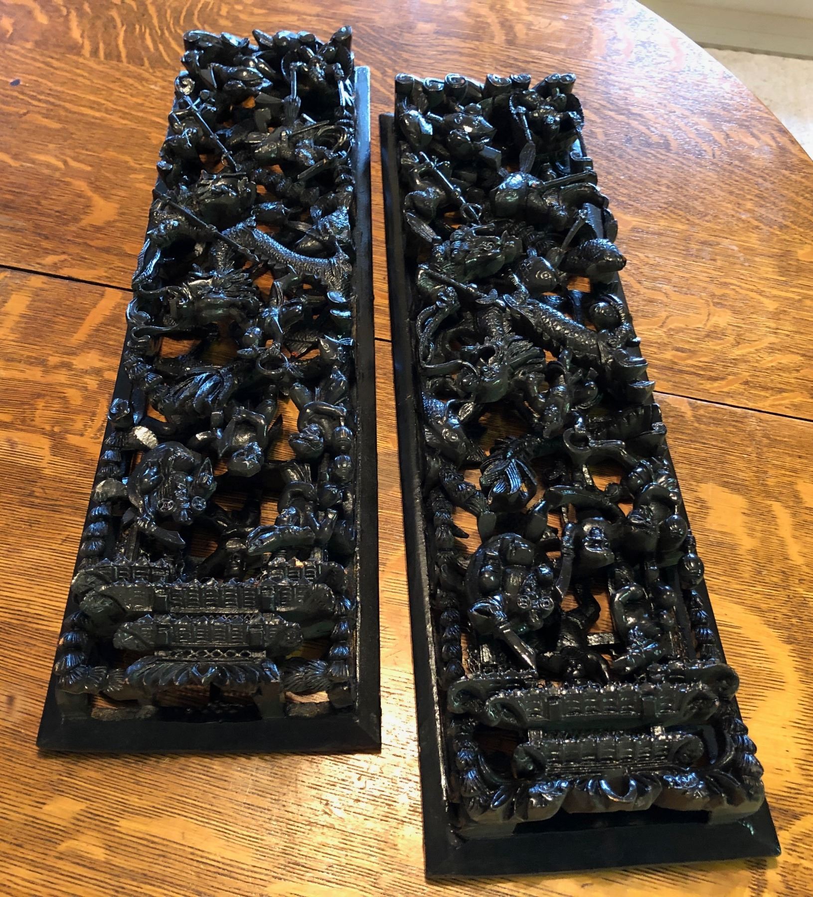 SET OF 2 BLACK LACQUER ASIAN WALL ART ITEMS