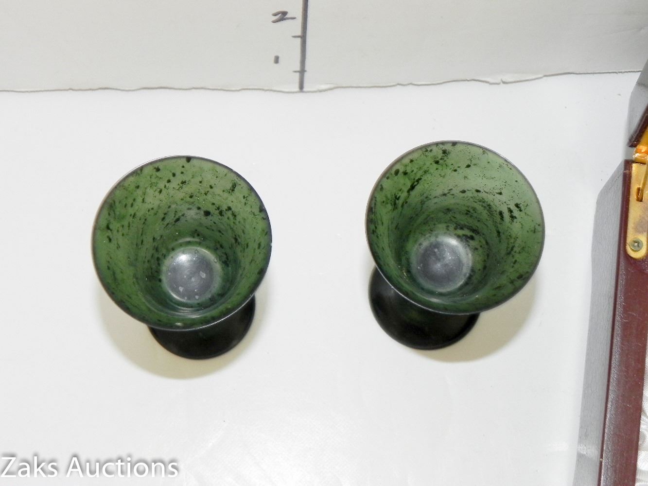 SET OF 2 CHINESE JADE MINI GOBLETS IN WOODEN BOX LOT 1