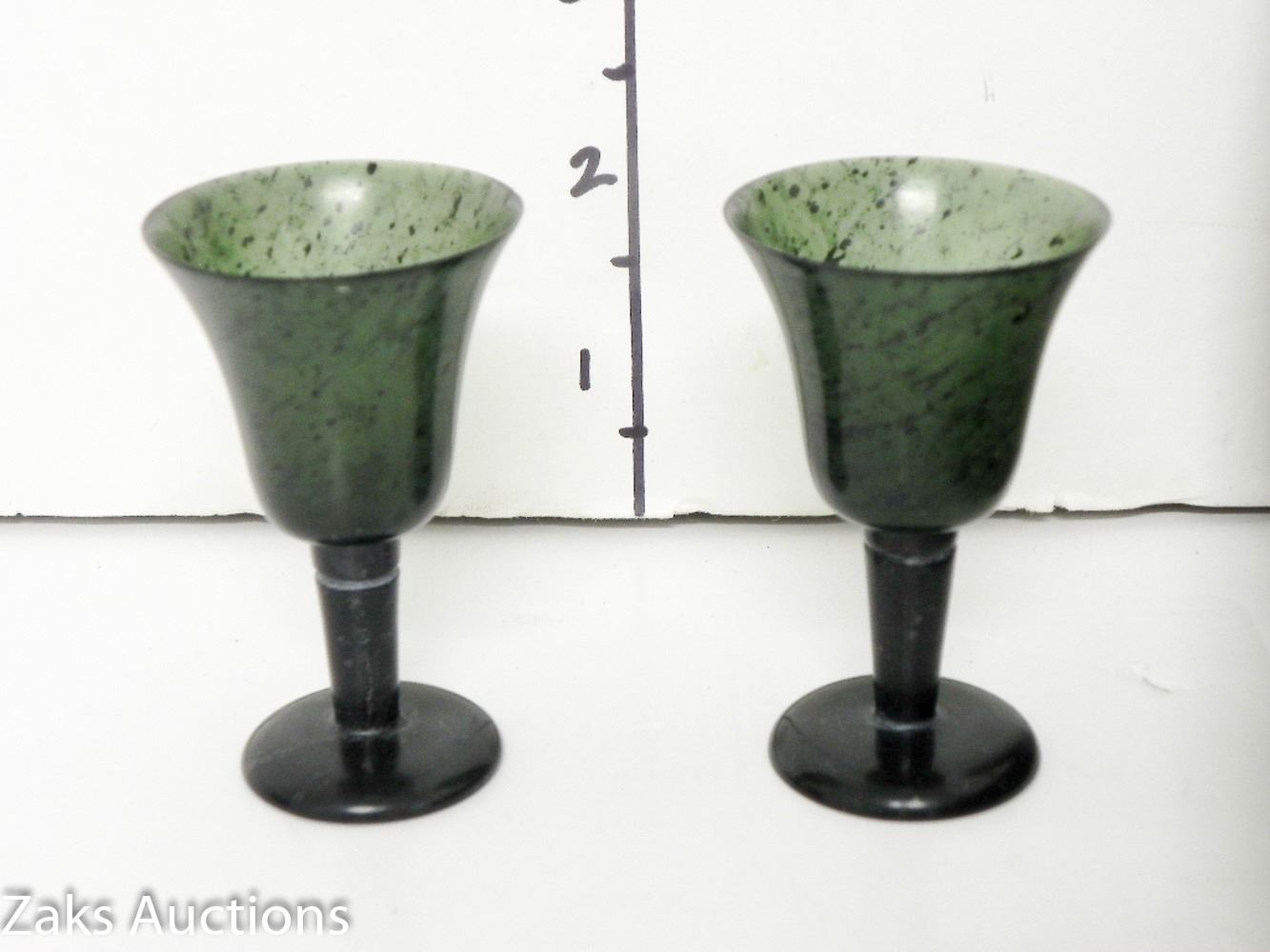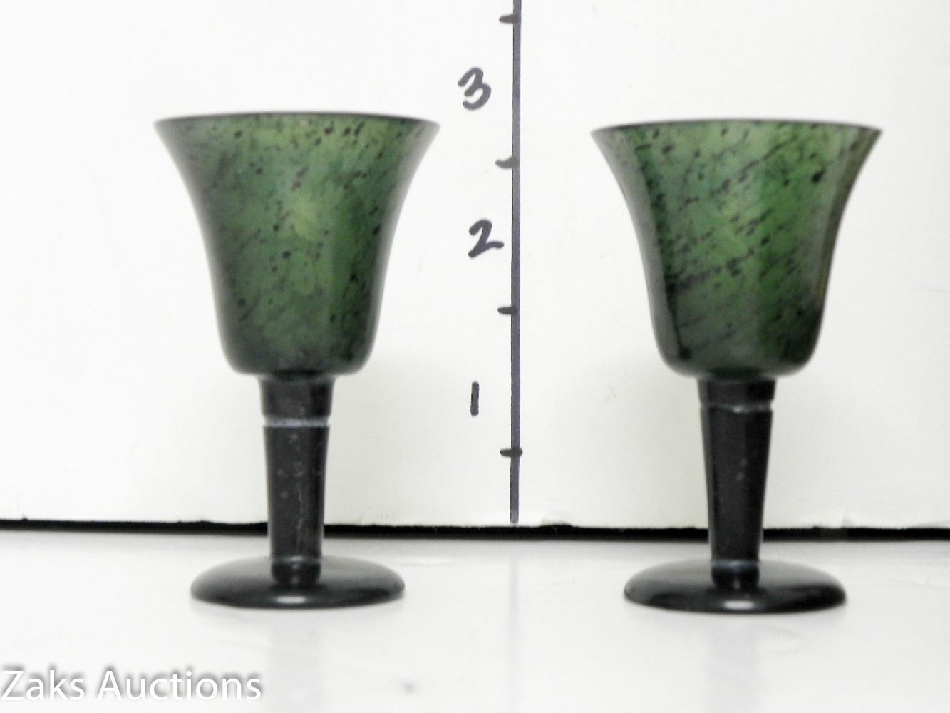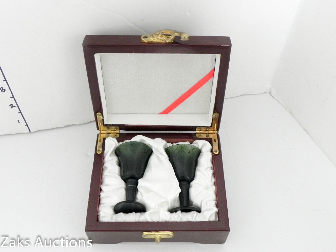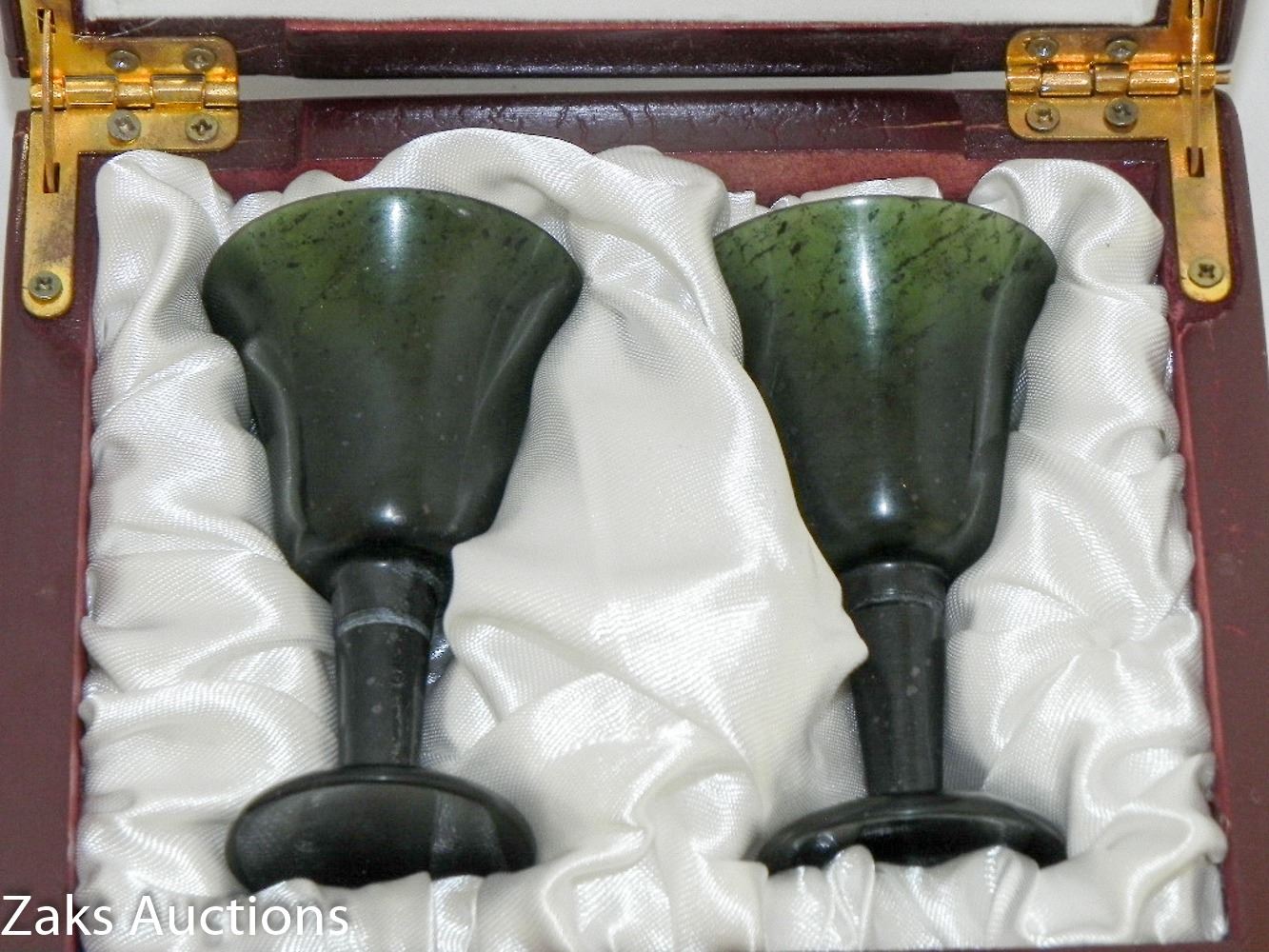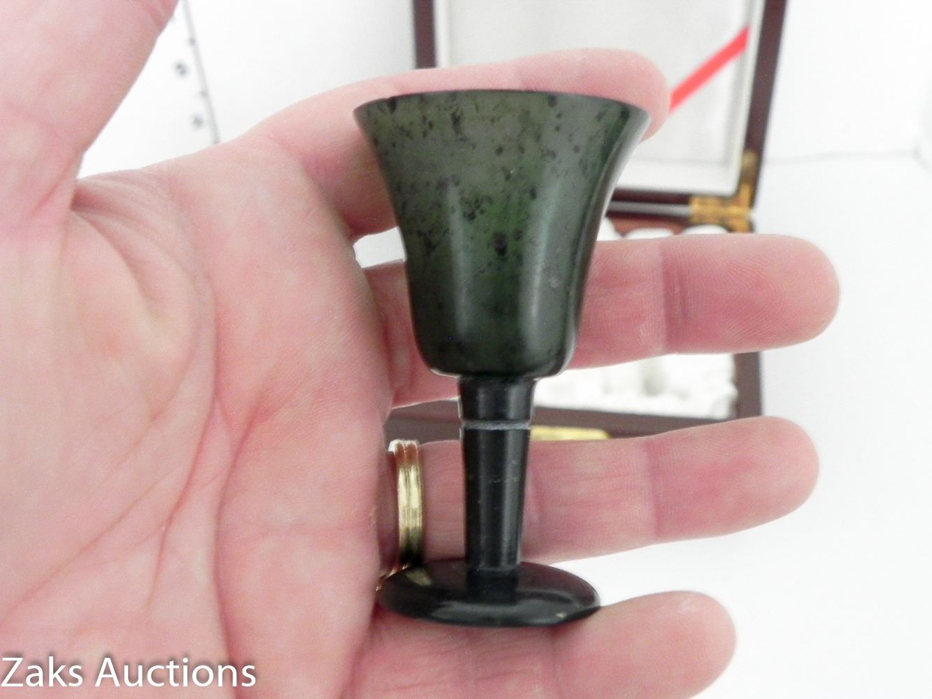 SET OF 2 CHINESE JADE MINI GOBLETS IN WOODEN BOX LOT 2