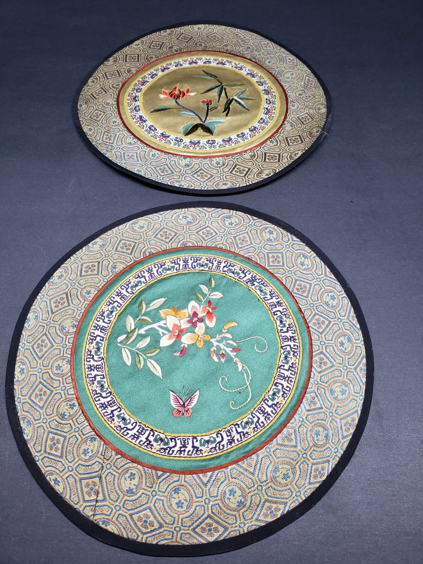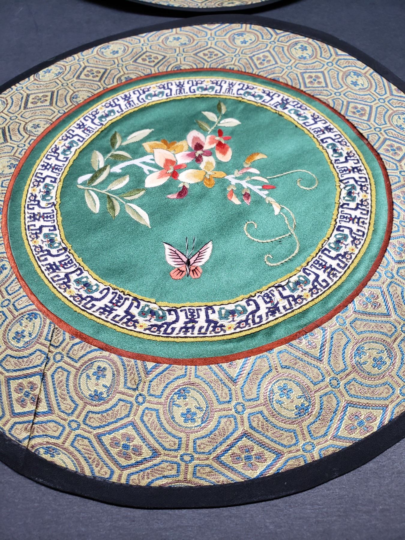 Set of 2 Emboridered Silk Chinese Placemats Piece is 10 1/2" Across All items Located in in Hollywood Florida Warehouse For Shipping Call today for quote they have item numbers and Pak Mail is available for all your custom packaging and shipping needs. We can package, palletize, crate, insure and ship to any Domestic or International location. All packaging and shipping fees must be paid in full before shipment is released. On international shipments, consignee is responsible for all Duties, Taxes, Customs Clearance or any destination fees that apply. Please visit our website @ www.pakmail.com/us770 for contact information or to get a quote. (Let us know you are a winning bidder from the Puckett auction so we can correctly arrange pick up for your item