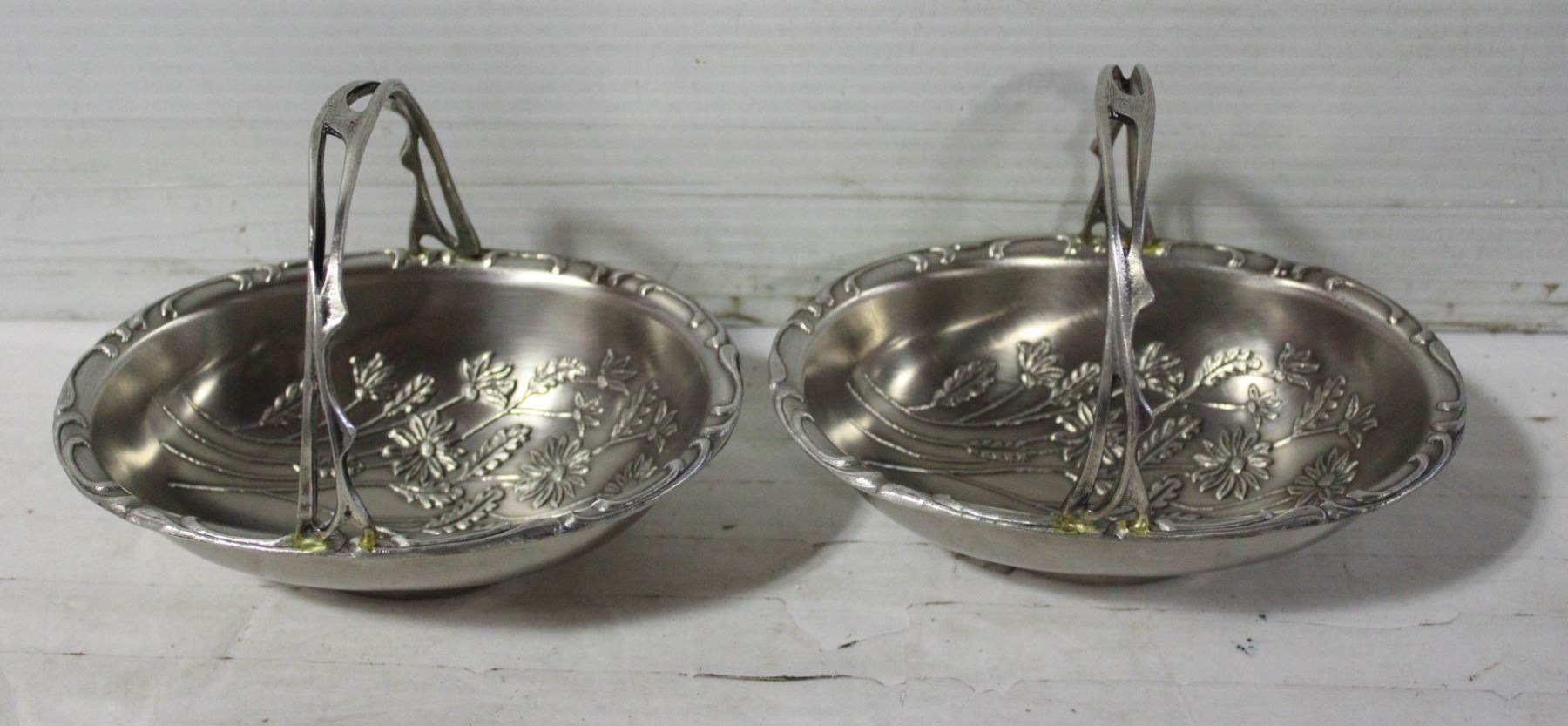 SET OF 2 FLORAL PEWTER BASKET TRAYS 6" - NEW