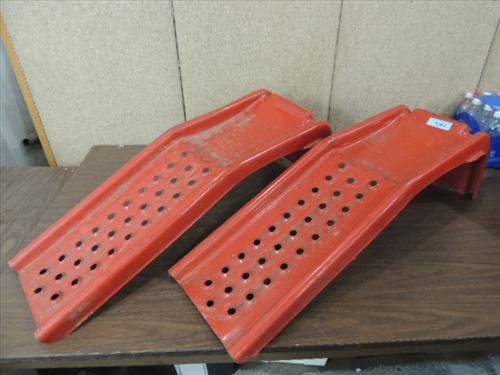 SET OF 2 FORMED STEEL CAR RAMPS FOR REPAIR WORK. AS SHOWN. VIEW PICTURE FOR DETAIL.
