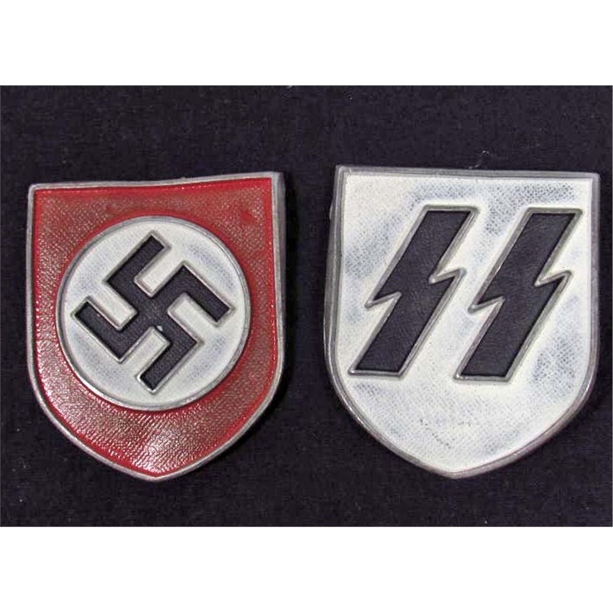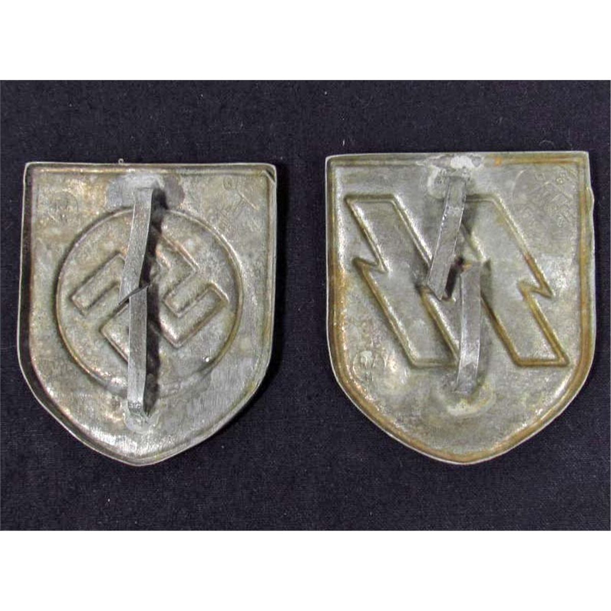 SET OF 2 GERMAN NAZI HELMET BADGES