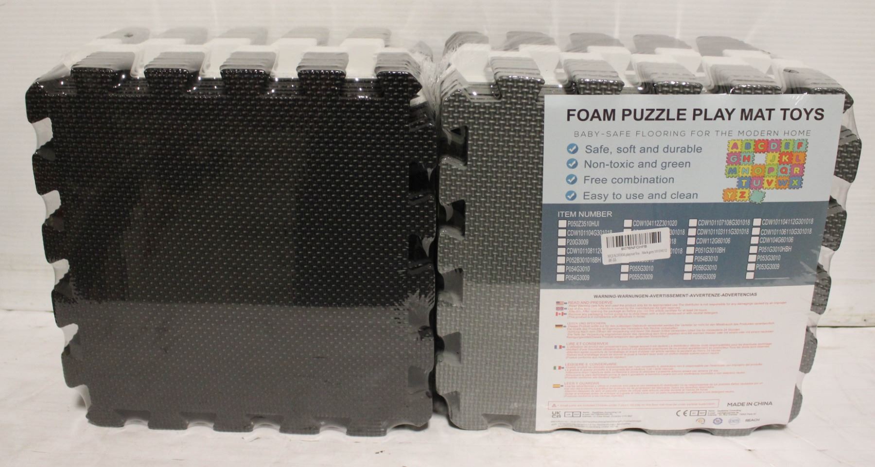 EXERCISE, YOGA. BLACK, WHITE AND GREY. 18 TILES THE PLAYMAT COVER AREA OF 35" X 69" (87CM X 172CM). THE THICKNESS IS 0.4" (1CM).