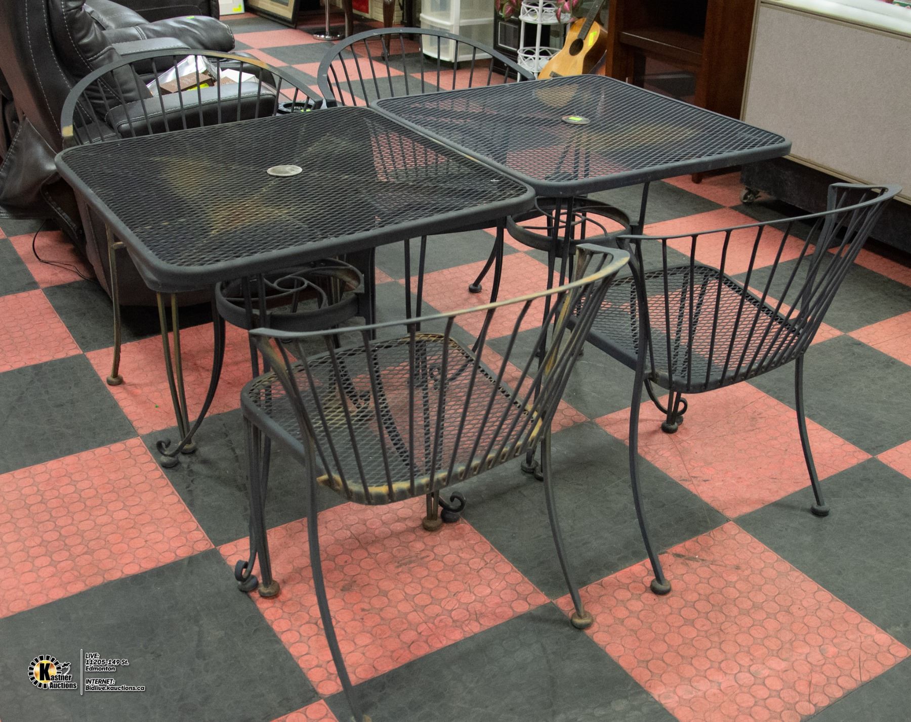 SET OF 2 METAL PATIO TABLES WITH 4 CHAIRS