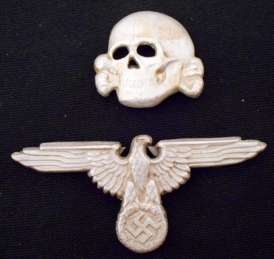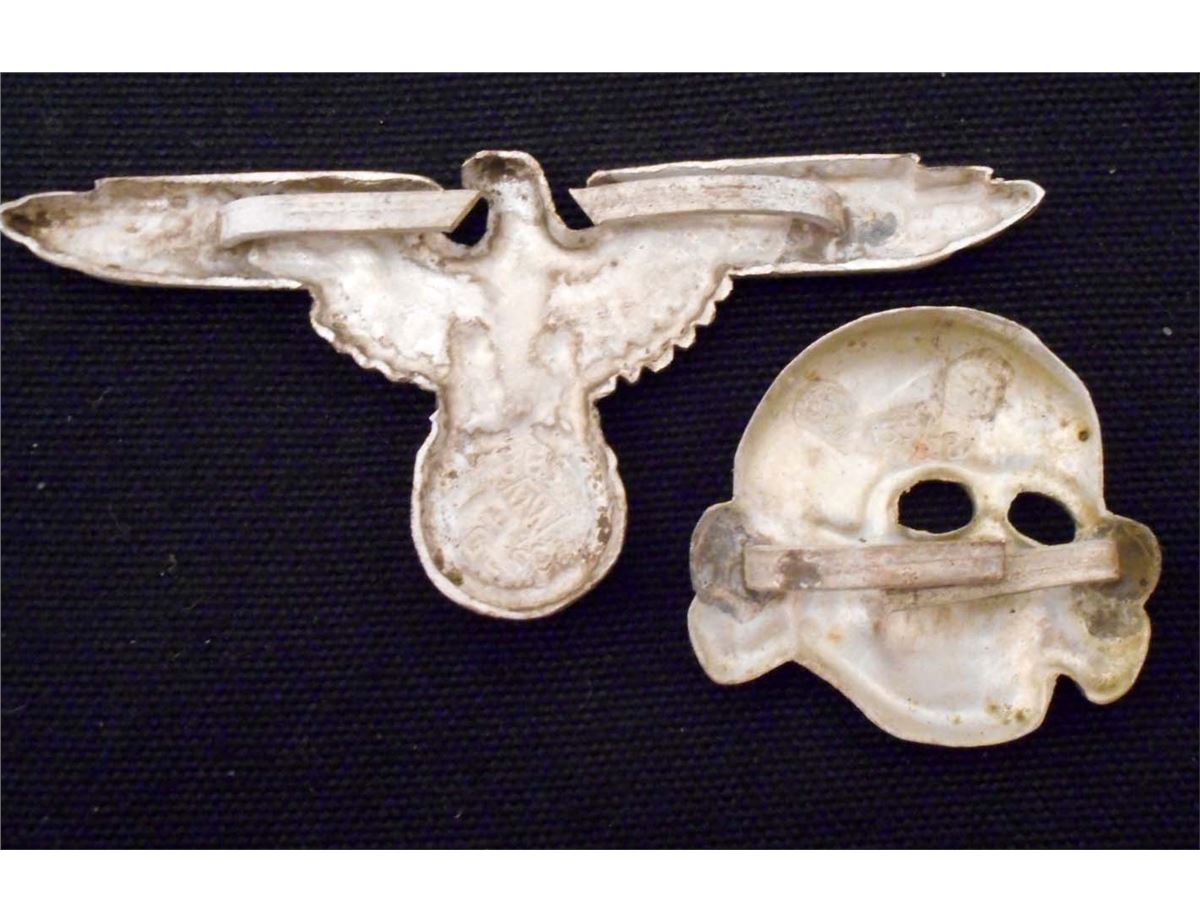 SET OF 2 NAZI GERMAN SS HAT BADGES
