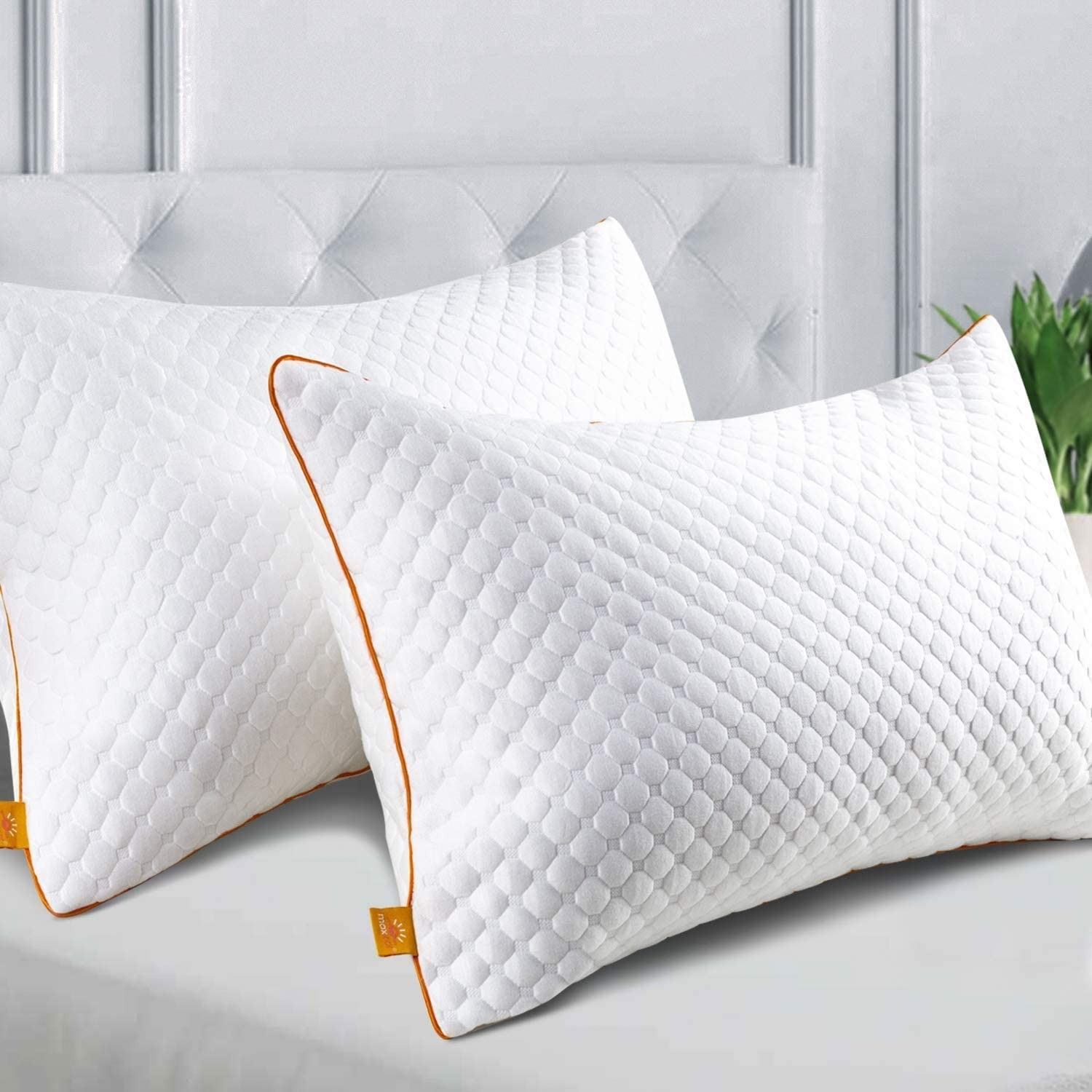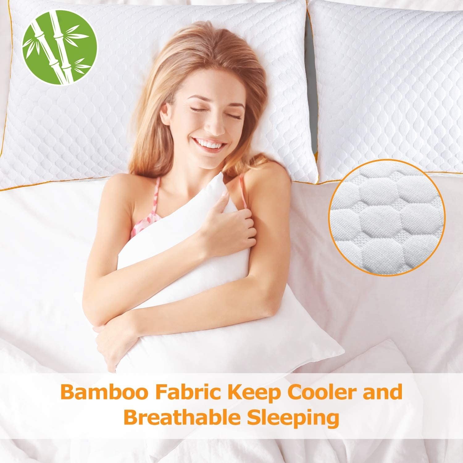 QUEEN SIZE HYPOALLERGENIC UPGRADED PILLOWS, COOLING BAMBOO FIBERS, REMOVABLE AND WASHABLE COVER, APPROX.18" X 28"