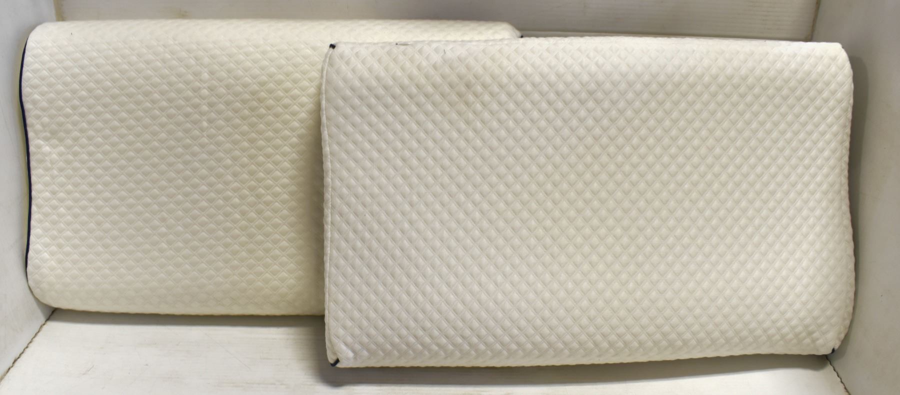 STANDARD SIZE, APPROX. 23.5 X 14", WHITE *ONE OF THE PILLOWS HAS SOME DUST ON THE COVER FROM UNPACKING* COVER IS REMOVEABLE AND CAN BE WASHED