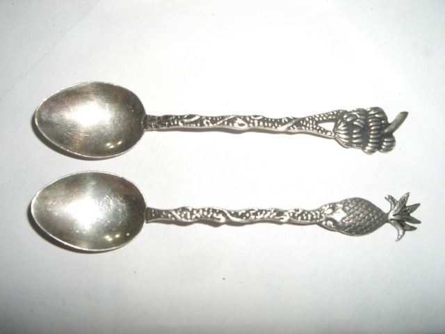 SET OF 2 VERY OLD SILVER SPOONS *VERY UNIQUE-BANNANAS & PINNAPPLE* STAMPED WITH LOGOS & *850*!!! SILVER SPOON CAME OUT OF SAFE BOX!! ***Coin, Currency & All Items Listed in this auction - Grades, Conditions and Values are not Safe Deposit Coins LLC Responsibilty. Grades, Condition and Values are determined by Consigner(s) & Buyers ONLY