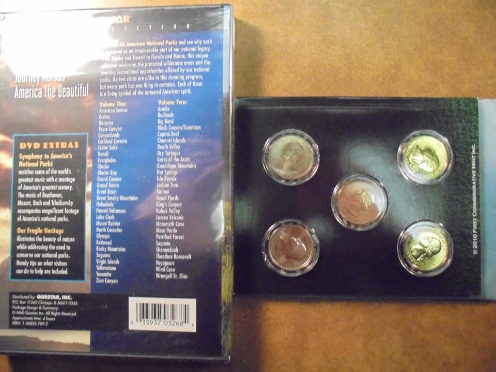 TOUR OF ALL 55 NATIONAL PARKS TWO DISC DVD. SET OF QUARTERS IS UNC P & D, COLORIZED, 24KT GOLD PLATED AND 24KT GOLD PLATED HOLOGRAM