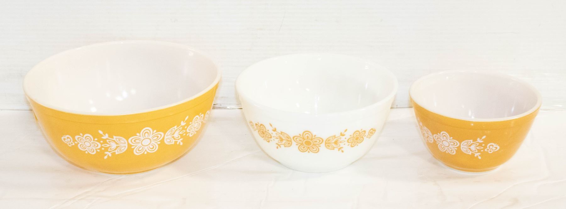 SET OF 3 BUTTERFLY GOLD PYREX BOWLS