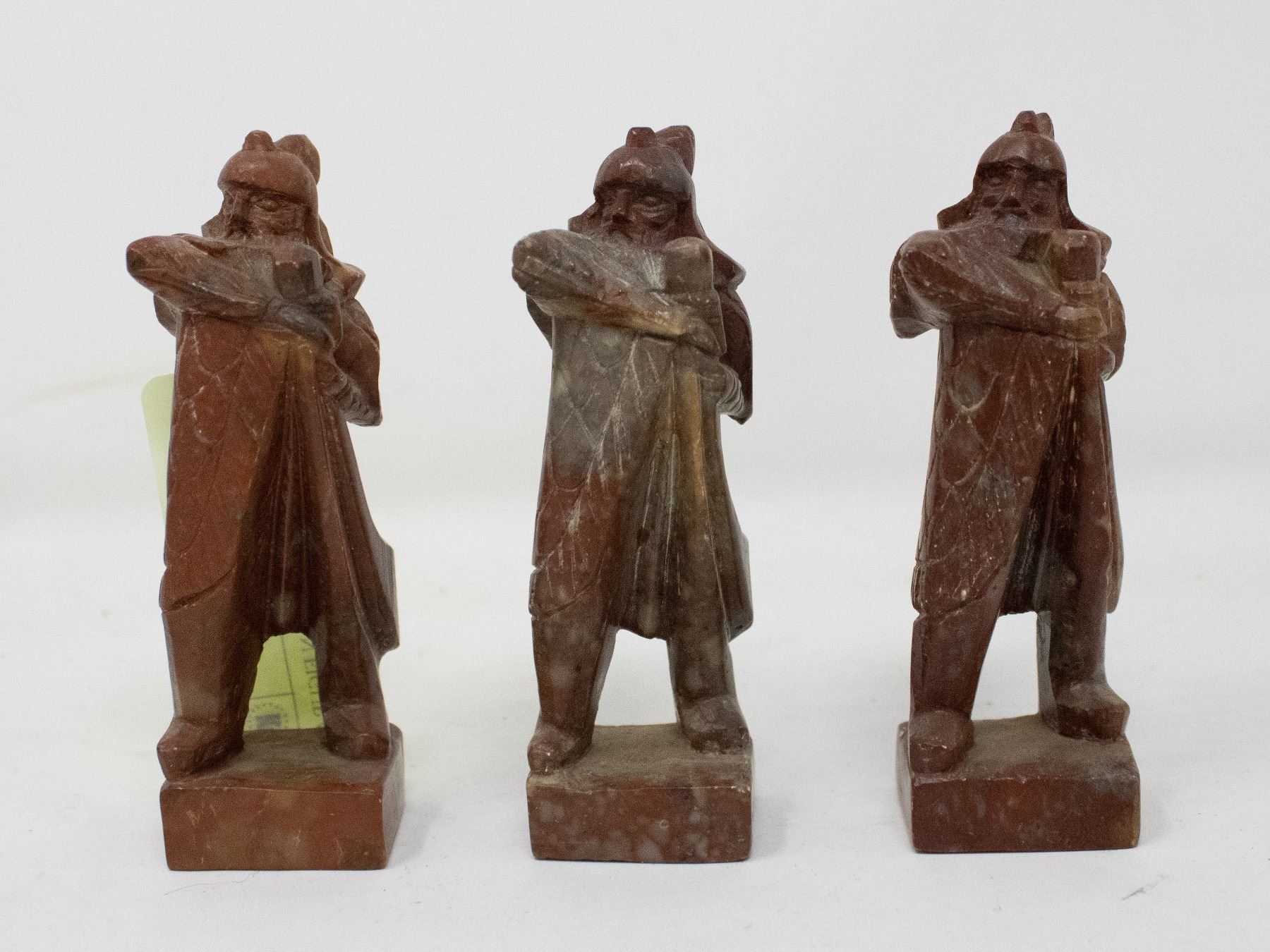 SET OF 3 CARVED ASIAN FIGURAL STATUES