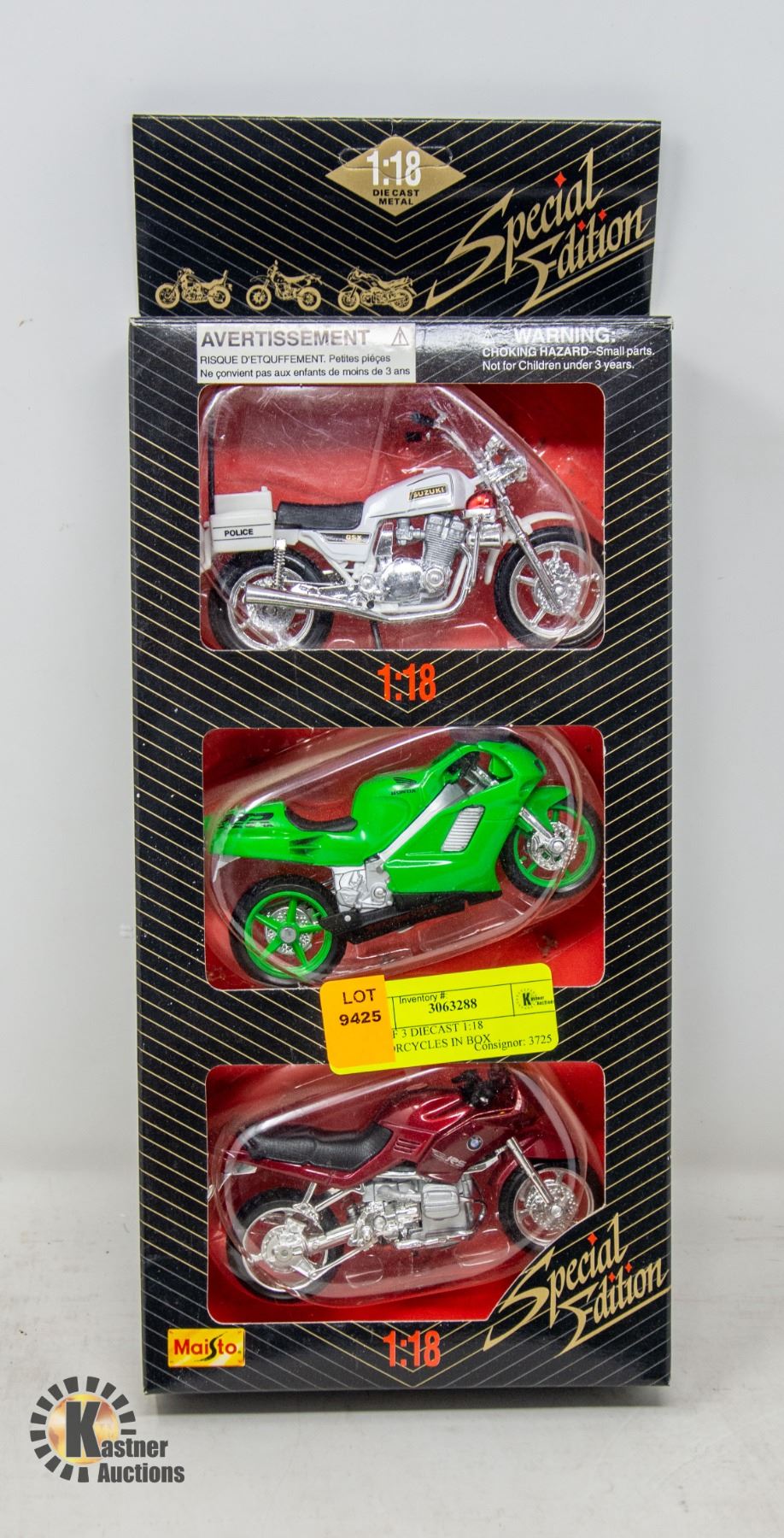 SET OF 3 DIECAST 1:18 MOTORCYCLES IN BOX