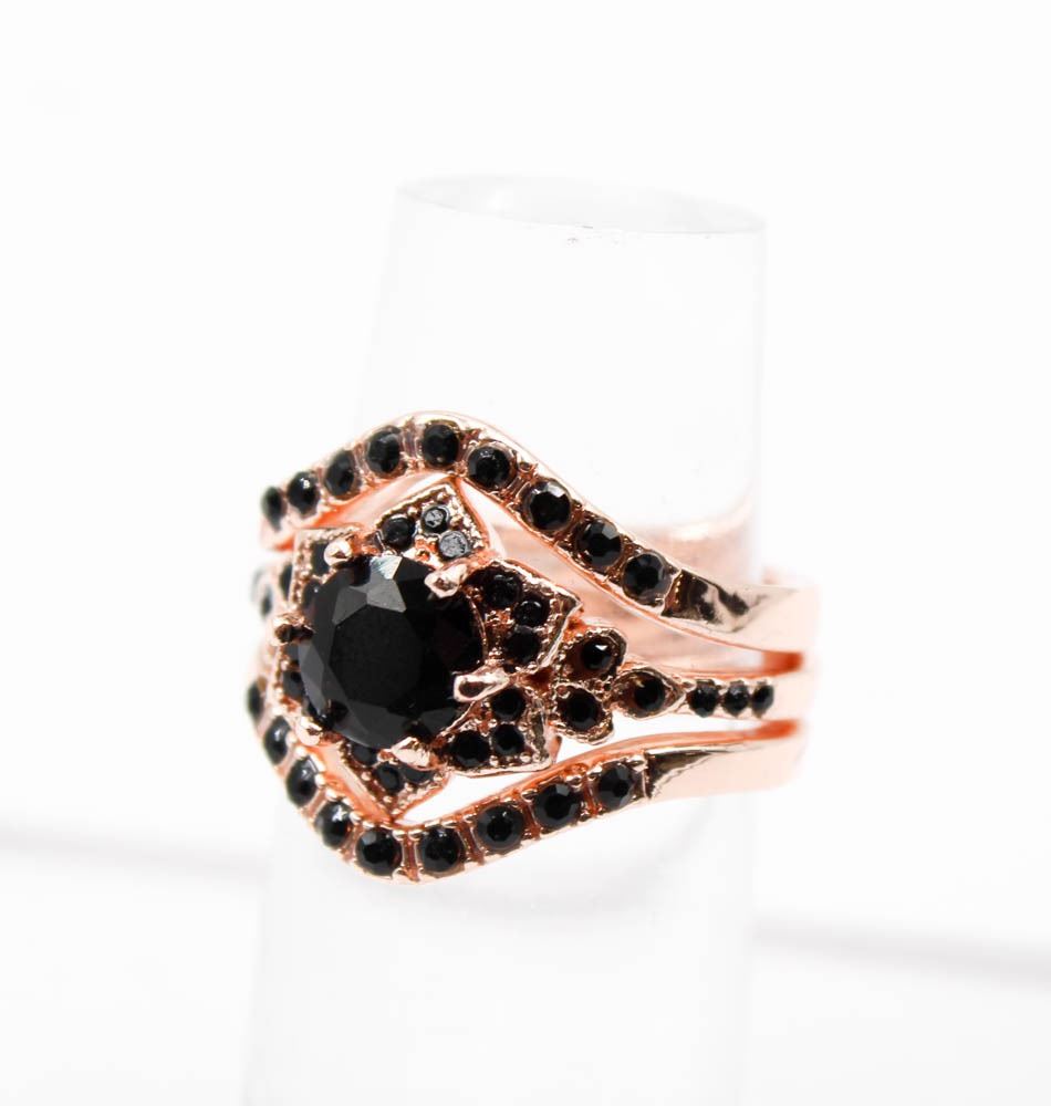 SET OF 3 GOLD TONE LADIES BLACK ZIRCONIA SZ8
