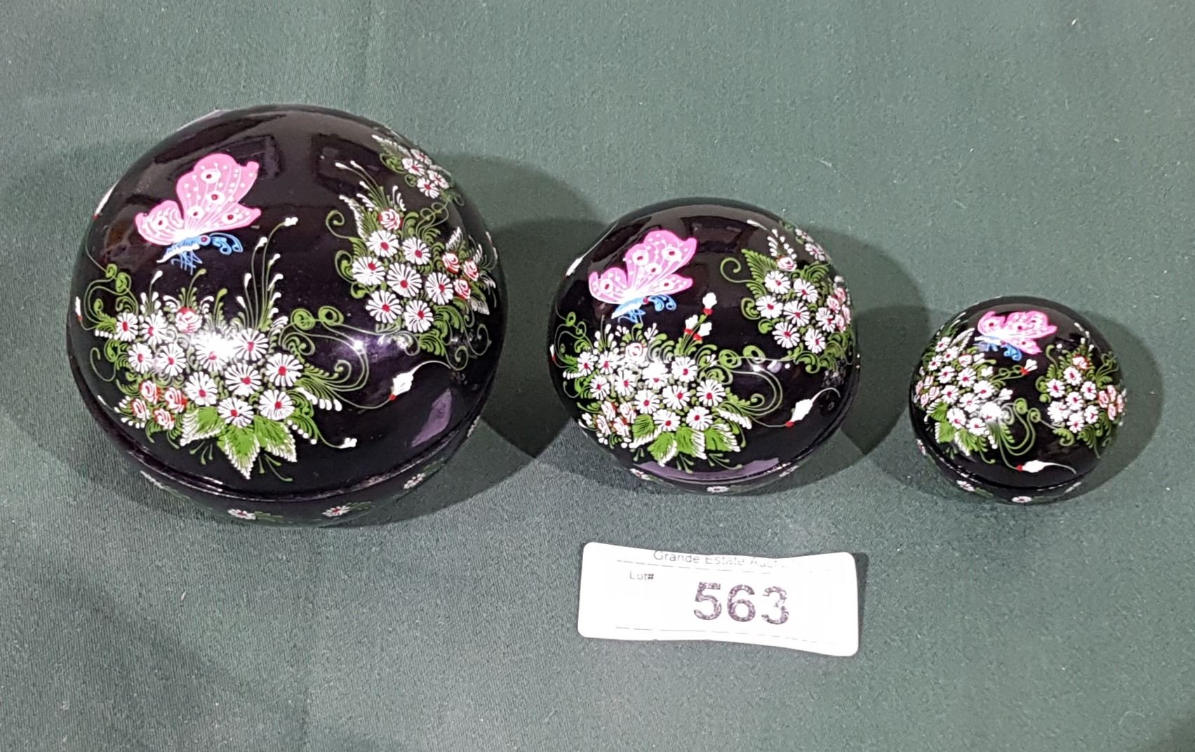 SET OF 3 HAND PAINTED LACQUER NESTING VANITY BOXES
