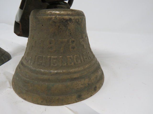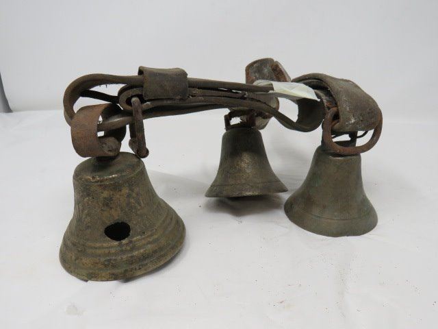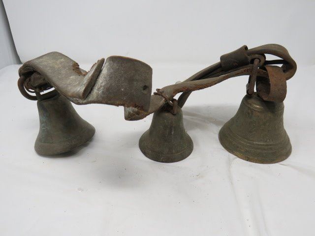 SET OF 3 HARNESS BELLS (BRASS) *1 BELL IS 1878 SAIGNELEGIER, SWITZERLAND - DAMAGED*