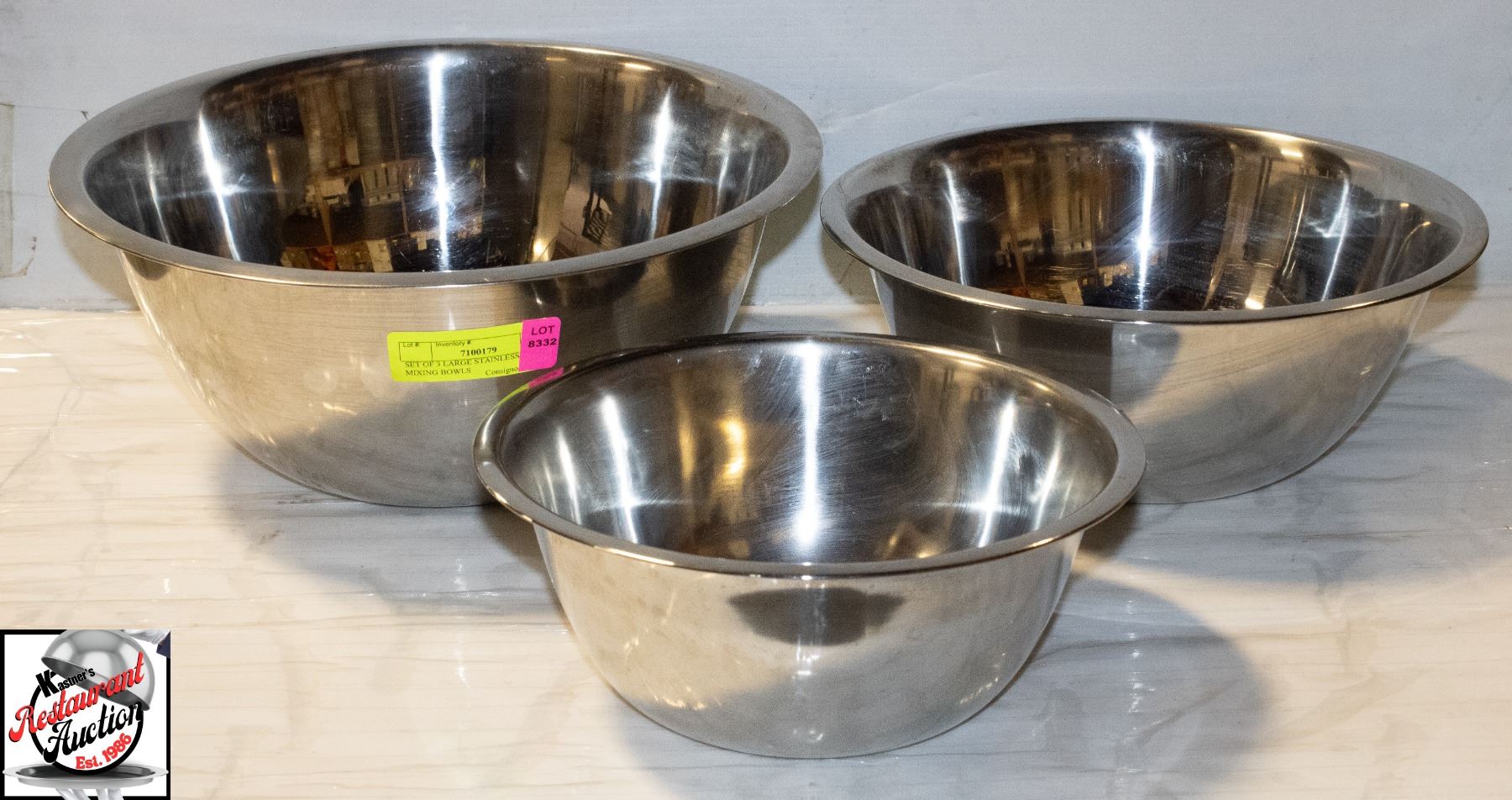 SET OF 3 LARGE STAINLESS STEEL MIXING BOWLS