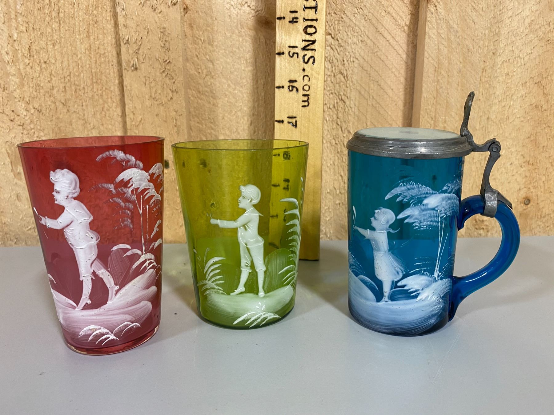 SET OF 3 MARY GREGORY GLASS PIECES