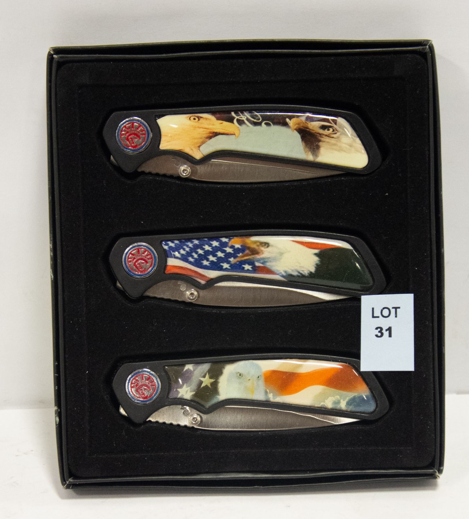 SET OF 3 MAXAM STAINLESS EAGLE POCKET KNIFES