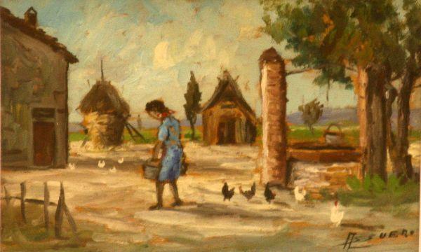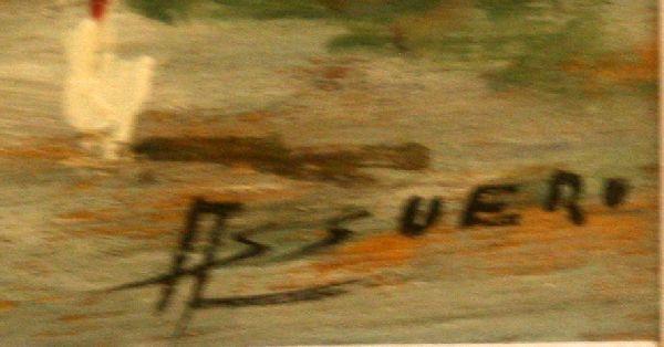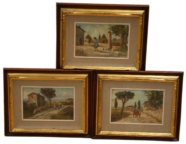 Each picture measures 12x8 inches, 20x16 inches matted and framed. Each of the three works is acrylic on board depicting Italian countryside scenes. All signed "Assuero" in lower right. Very good condition.
