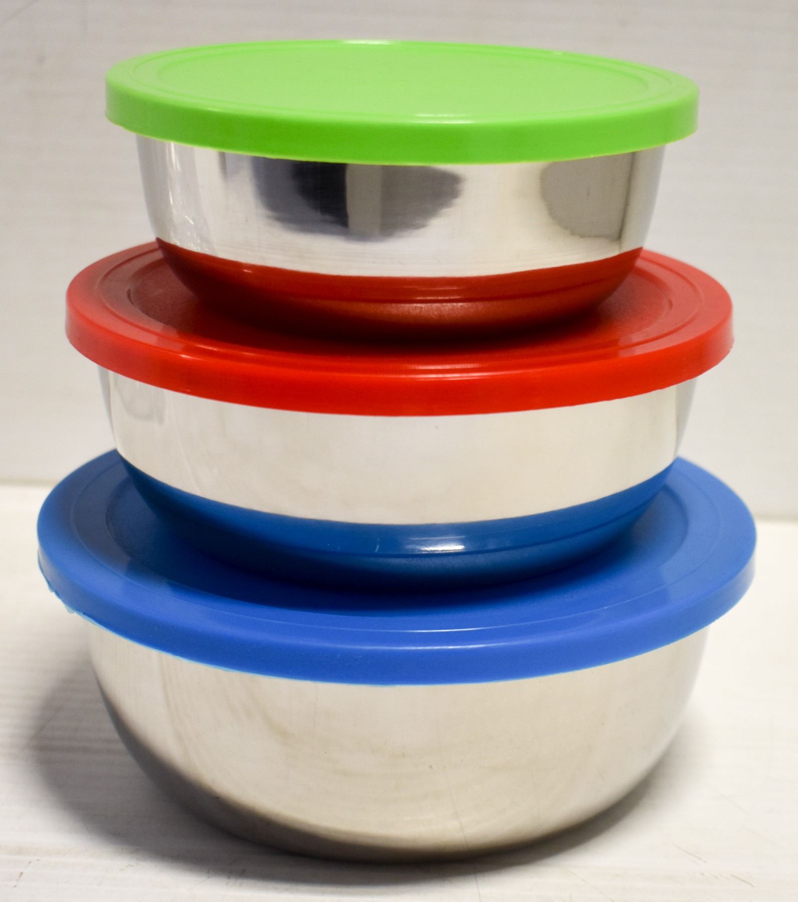 SET OF 3 S/S FOOD STORAGE BOWLS W/ AIR TIGHT LIDS