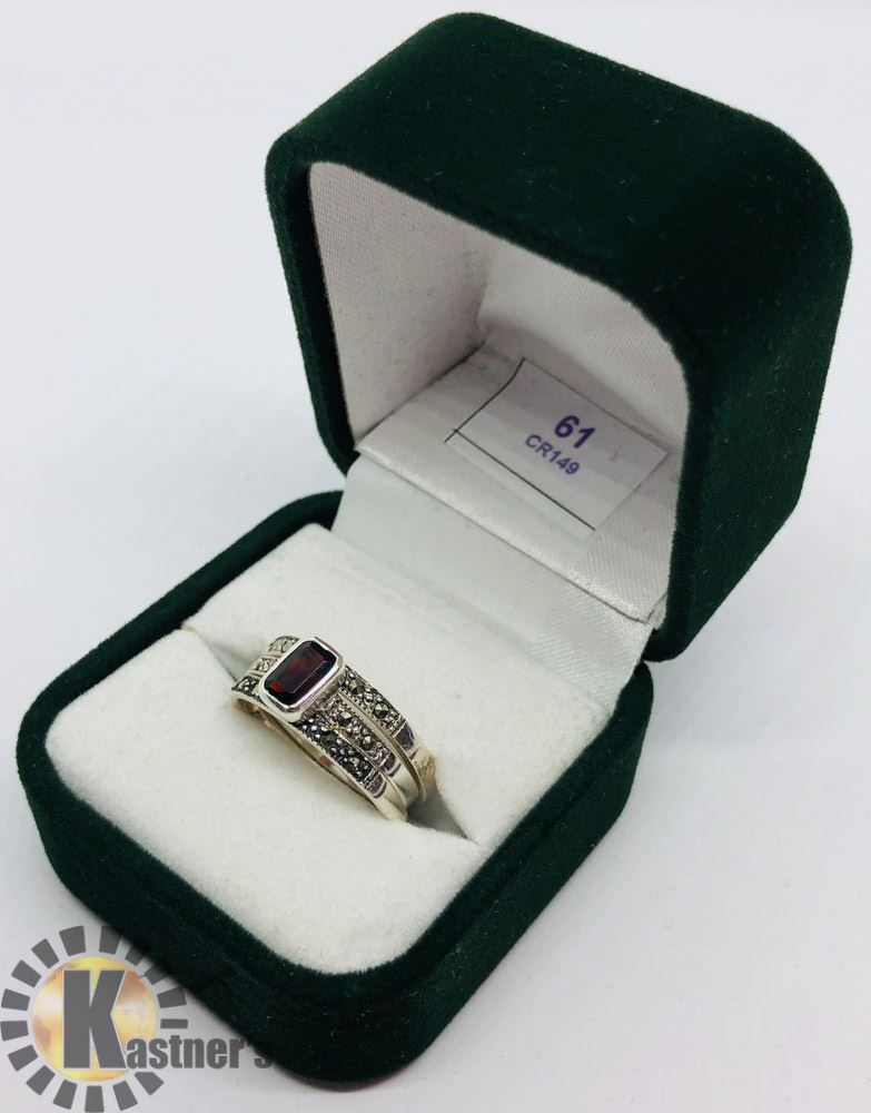 #61-CR173:M75: SET OF 3 SILVER GARNET MARCASITE RINGS. - JEWELRY.
