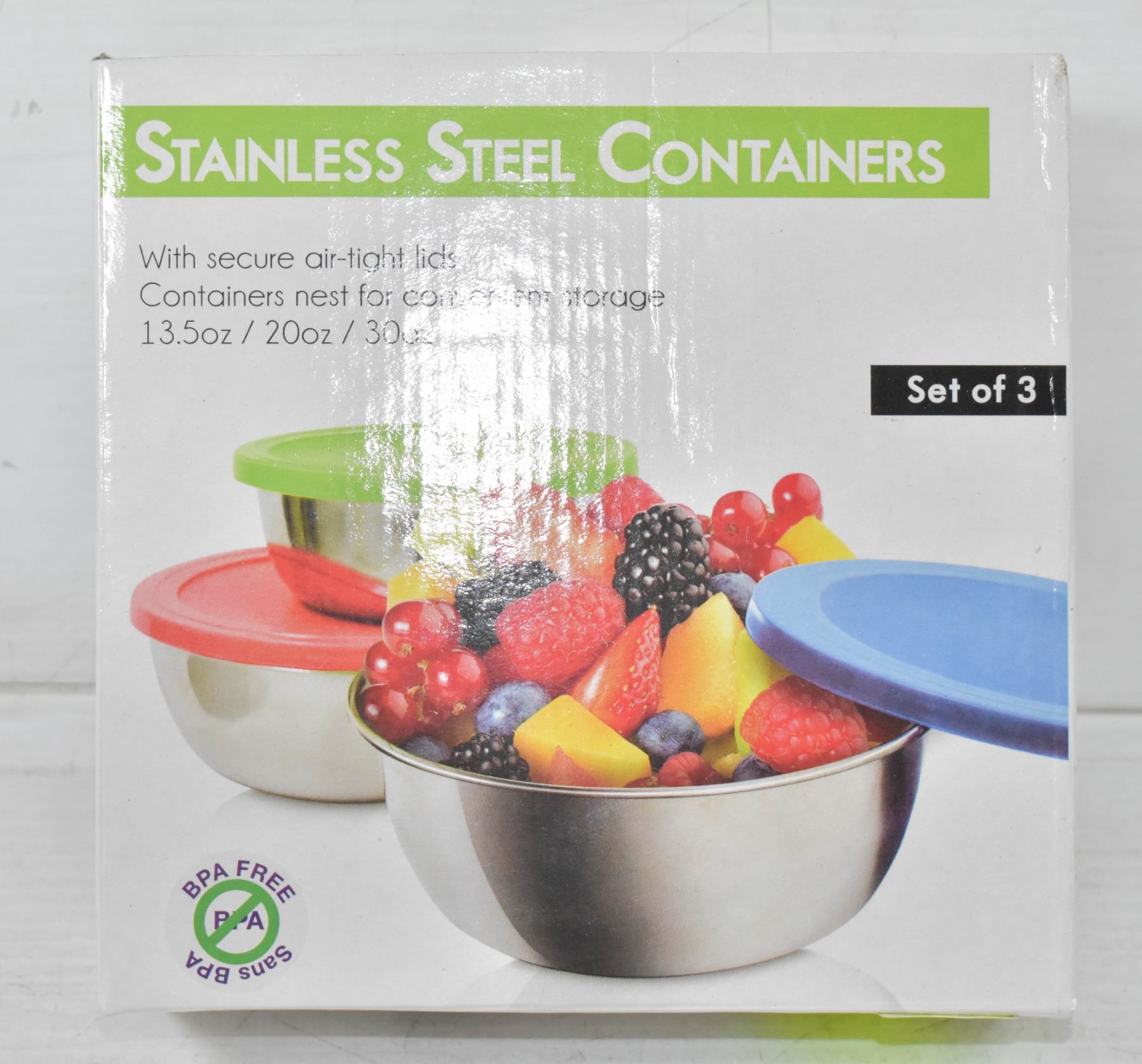 SET OF 3 STAINLESS STEEL STORAGE CONTAINERS WITH