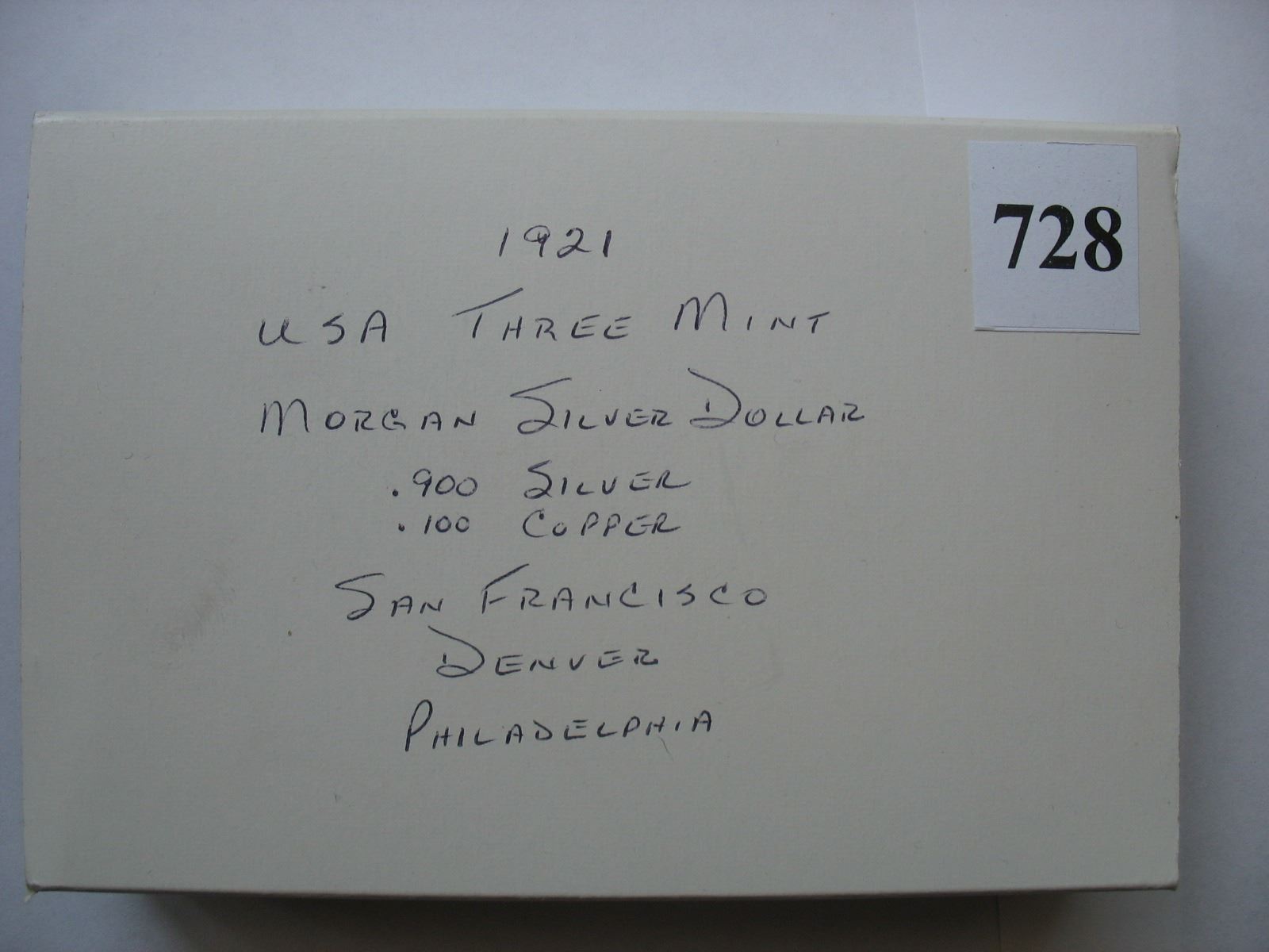 SET OF 3 US 1921 MORGAN SILVER DOLLARS - (3 MINT MARKS) - .900 SILVER