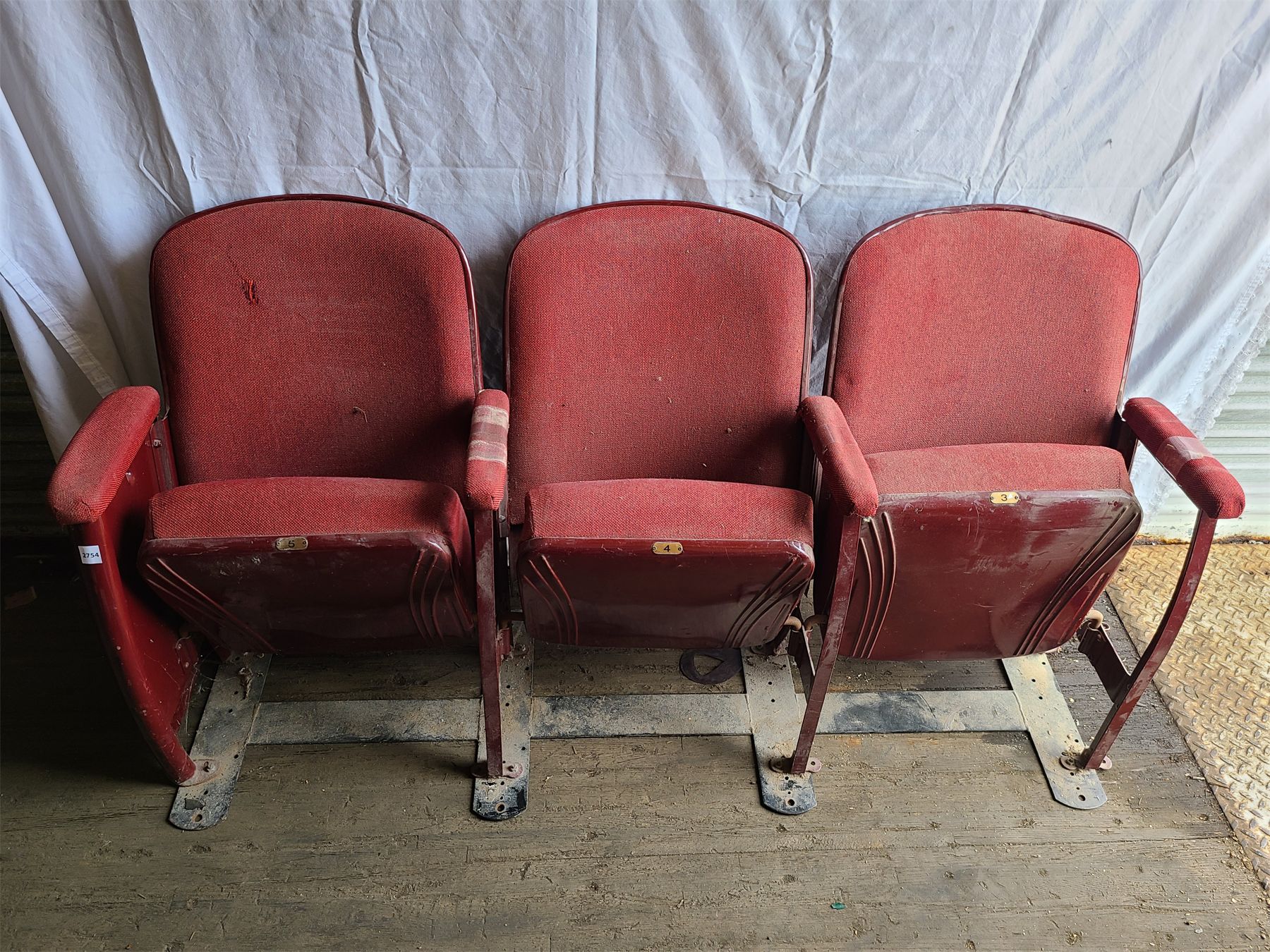 SET OF 3 VINTAGE THEATRE SEATS - 19 x 32 x 63in