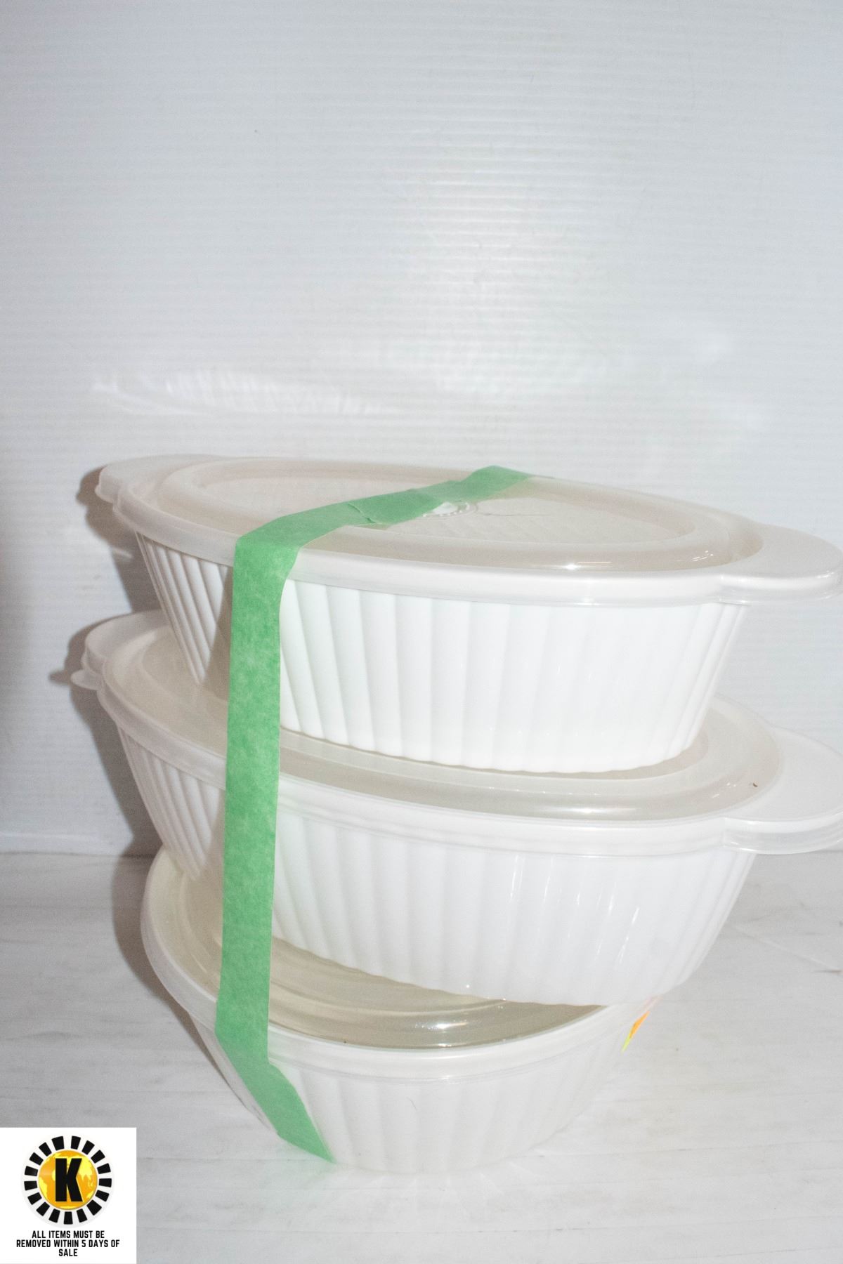 SET OF 3 WHITE LIDDED STORAGE CONTAINERS